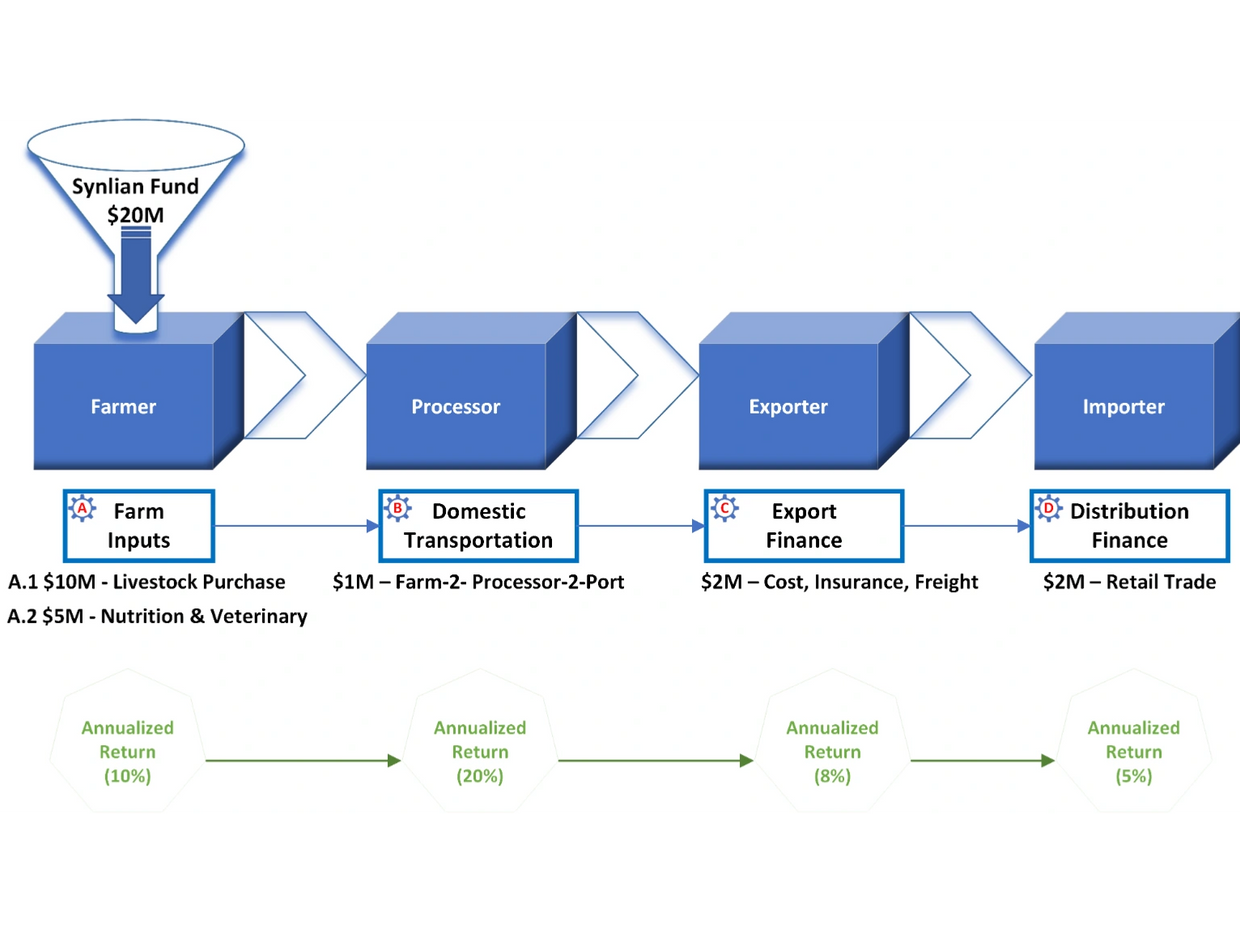 In the model presented here, Synlian funds several parts of a single vertically aligned supply chain: